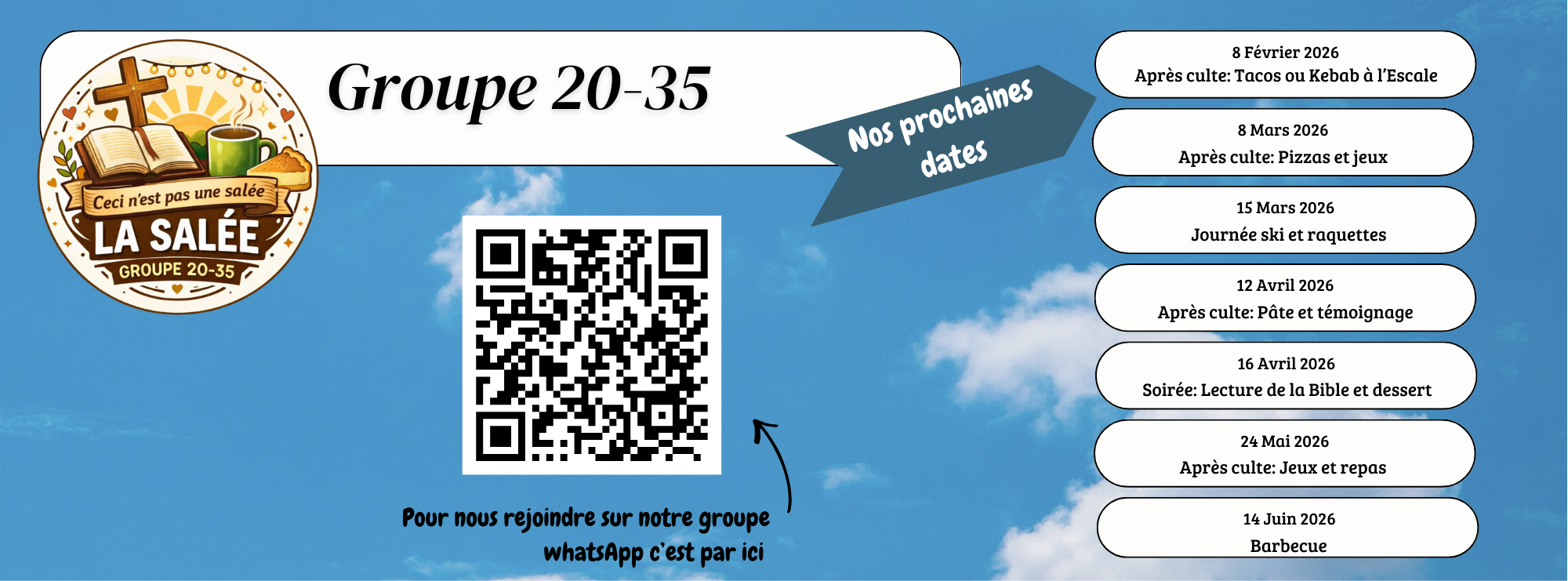 Nous espérons que ce site internet répondra à vos questions sur nos activités. N'hésitez pas à nous contacter pour de plus amples informations ou rejoignez-nous un dimanche matin à 09h45 pour notre culte !
