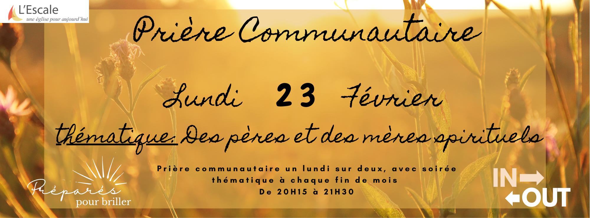 Lundi, 23 février, 2026 - 20:15 - 20:45Prière communautaire Thématique: Des pères et des mères spirituels